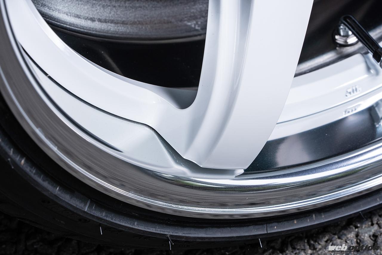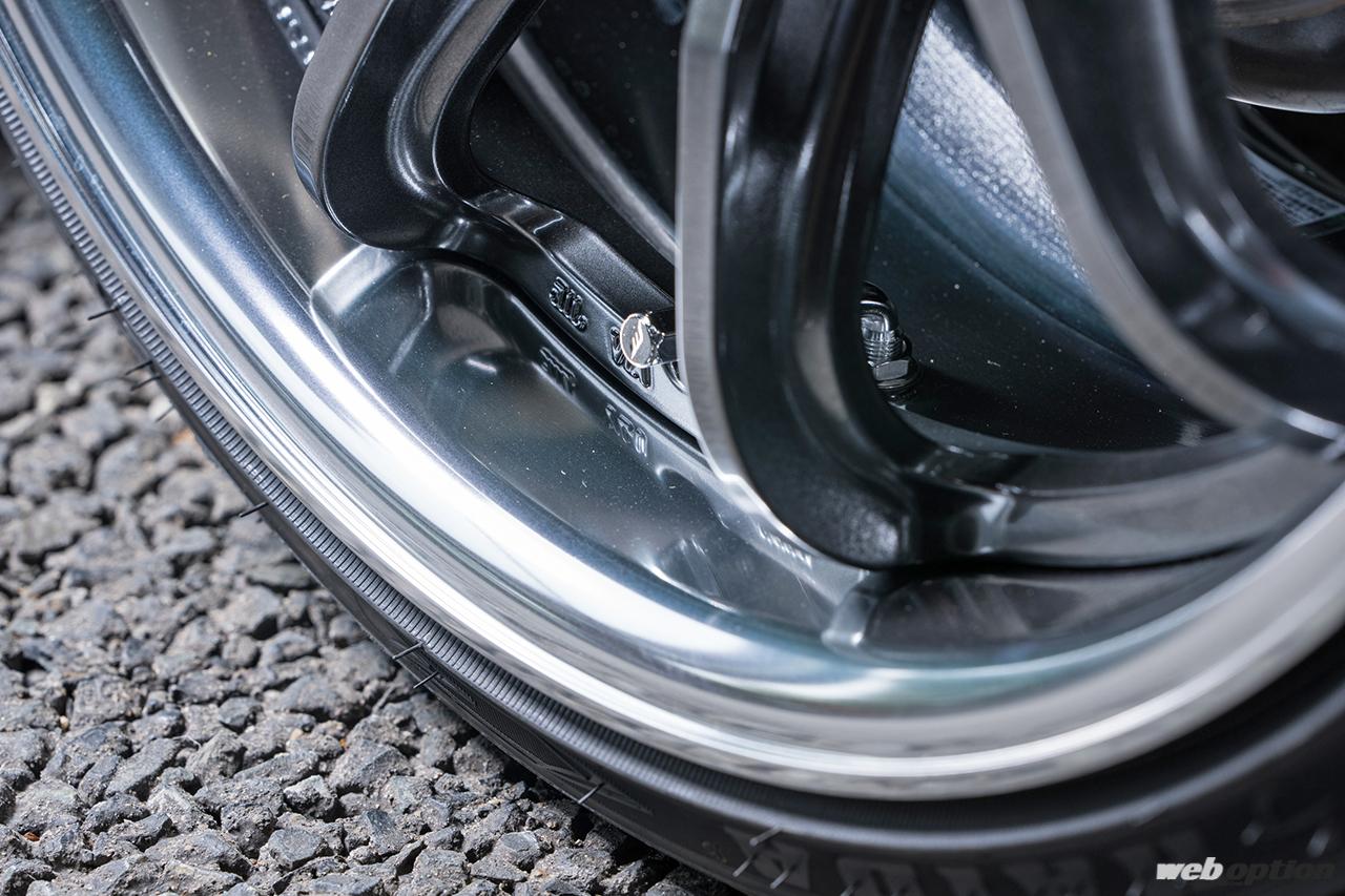 スポークサイドのリブはコンケイブとは異なるラインを描き、視覚的深みを高めている。思うような深みが稼ぎにくいFF車でも満足度は高い。