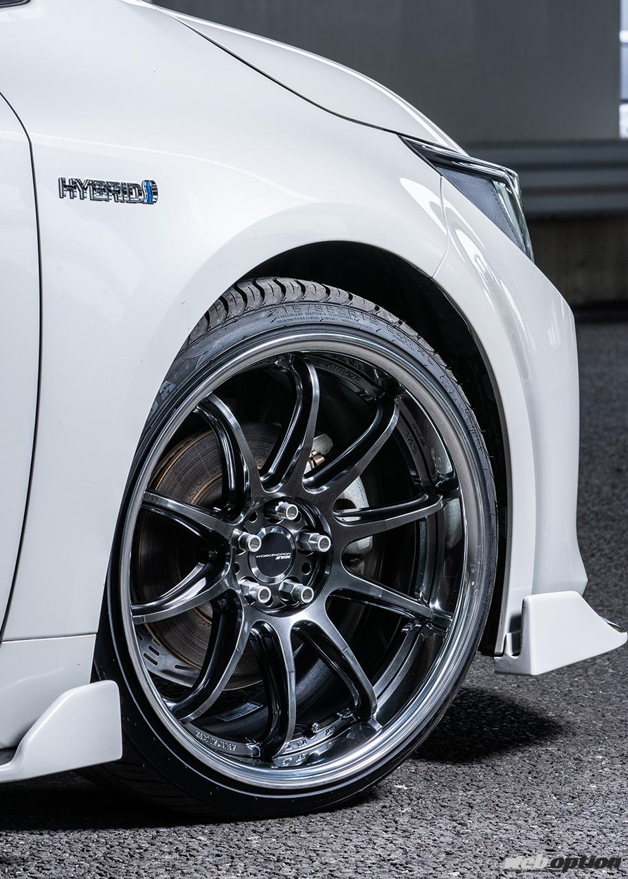 スポークサイドのリブはコンケイブとは異なるラインを描き、視覚的深みを高めている。思うような深みが稼ぎにくいFF車でも満足度は高い。