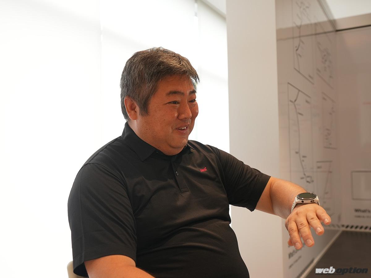 「コンセプトとしてはS203を踏襲。ベース車両が新しくなりましたが、大きな方向性は一緒です。ヤマハとジョイントし、パフォーマンスタンパーを採用したのも、この車両が初めてです」。(STI商品開発部 神作さん)