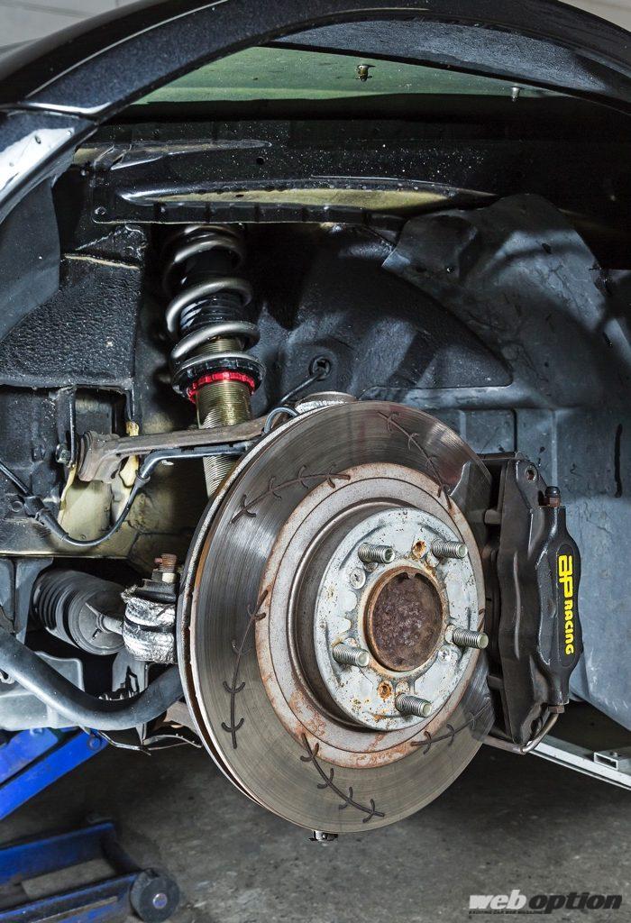 足回りには自社オリジナル設計のM&Mレーシングダンパーを採用。スプリングのレートは前後とも20kg/mmが標準だが、減衰力共にフルオーダーも可能。その他、フロントブレーキはAPレーシングの4ポットを装着。