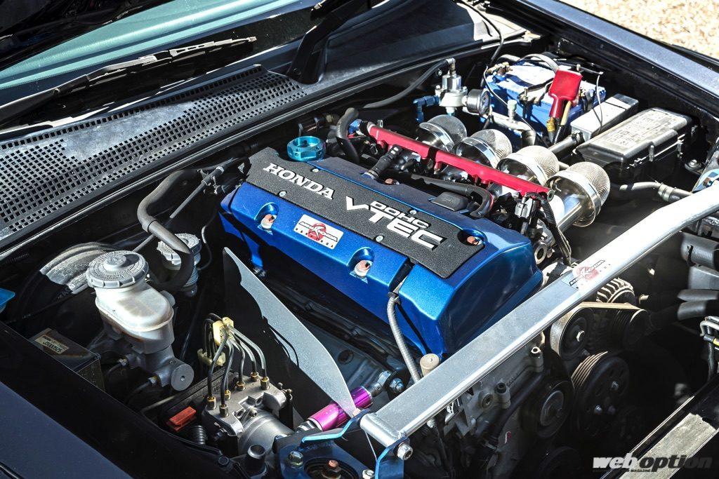 撮影車両のエンジンは、2.0Lの排気量はそのままに鍛造ハイコンプピストンを投入した4スロ仕様のF20Cを搭載。ハルテック制御でハイレスポンスなパワーフィールを作り出している。なお、M&MではAP1の2.2リッター化やAP2の2.4リッター化など、豊富なアップグレードメニューも用意している。