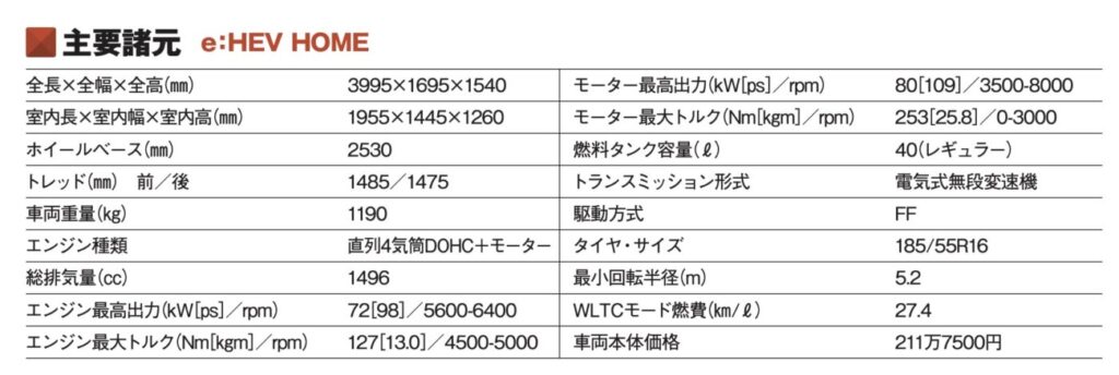 WLTCモード燃費    29.4km/l ※「e:HEV BASIC」のFF車