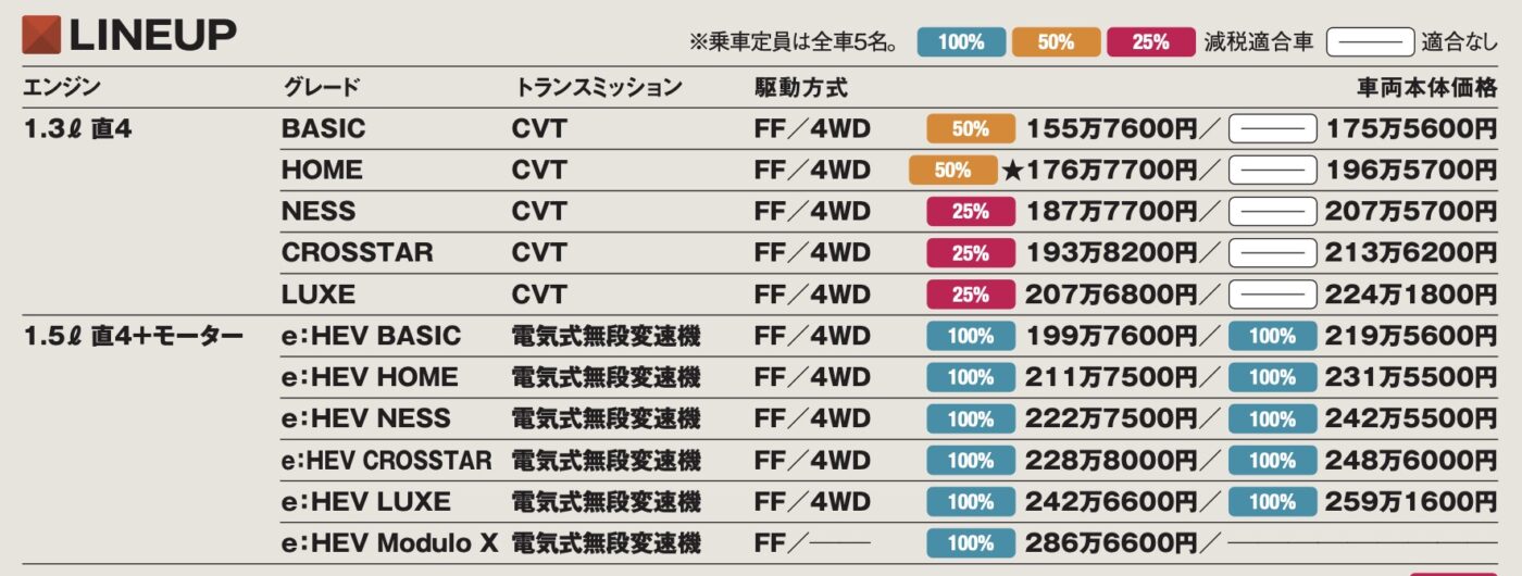WLTCモード燃費    29.4km/l ※「e:HEV BASIC」のFF車