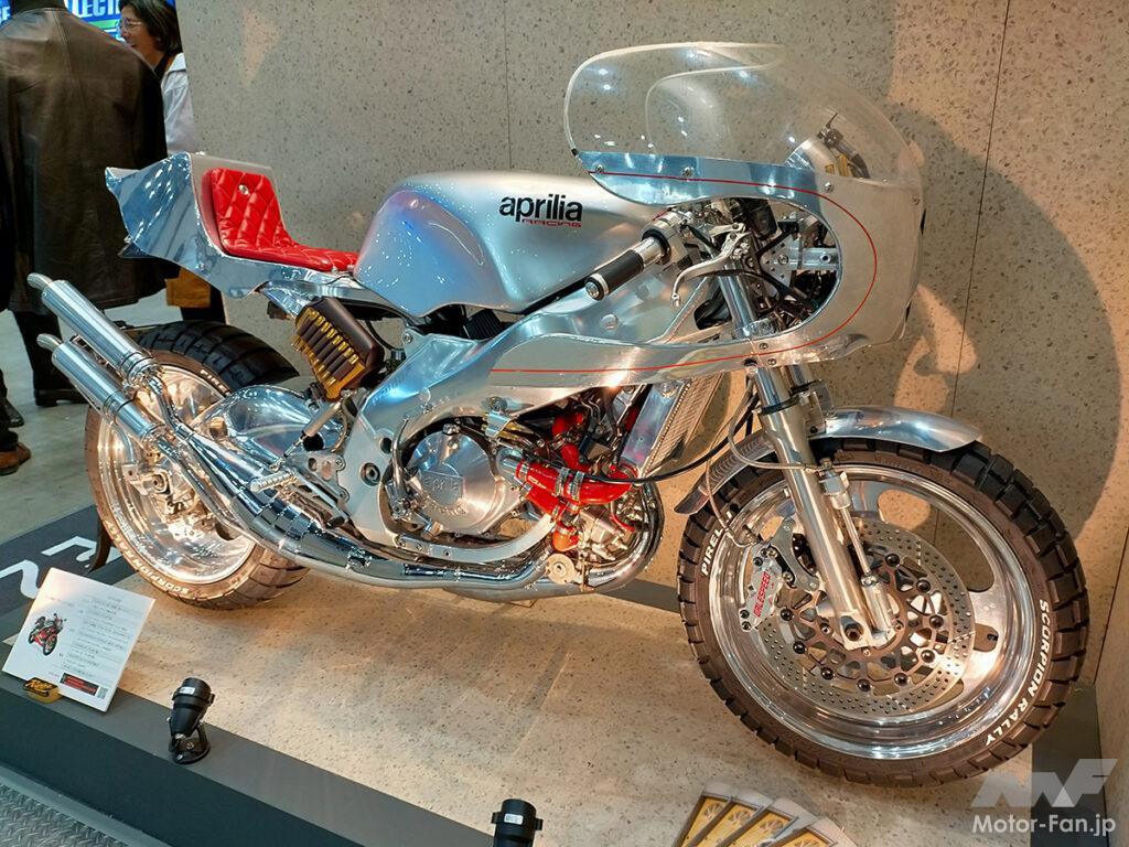写真はお宝車・アプリリアRS250をベースにした、チューニングモード全開のきらびやかなカスタム。シルバーカラーにレッドのアクセントを程よく効かせた、ゴージャスなイメージを演出。
