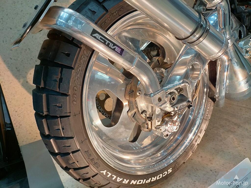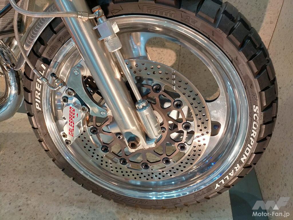 | 足周り | 前後ホイール(フォーマンス、ミッチェルホイール) ディスクブレーキ(サンスター、ワークスエキスバンド) ブレーキキャリパー(アクティブ ゲイルスピード 4POT 削り出し) ブレーキマスターシリンダー(FRANDO) バックステップ(ワンオフ) |