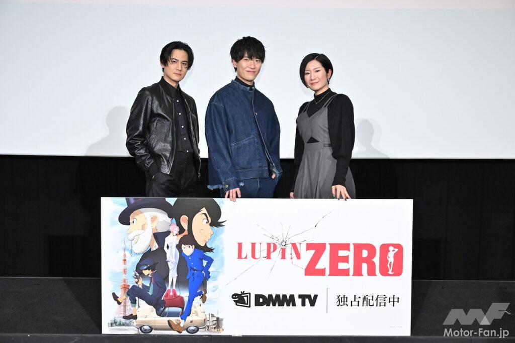 2022年12月23日夜、東京のグランドシネマサンシャイン池袋にて「『LUPIN ZERO』プレミアム上映会」が行われたので、そちらのリポートもお送りしよう。 平日にも関わらず満席の会場の中、第1話『少年ルパン、狼に出会う』、第2話『列⾞で秘宝に⾷らいつけ』、第3話『⼀世の孫、跡⽬を競う』の上映後に、声優の畠中祐さん(ルパン役)、武内駿輔さん(次元役)、⾏成とあさん(しのぶ役)によるトークショーが開かれた。
