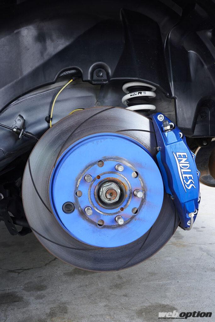 さらに、底上げされた動力面に負けないよう、サスペンションはHKSハイパーマックスR、ブレーキはエンドレスのキャリパーシステム、LSDはオリジナルの機械式1WAY…と、足回りから駆動系まで徹底的に強化。サーキットでも存分に楽しめるハイスペックへとブラッシュアップさせているのだ。