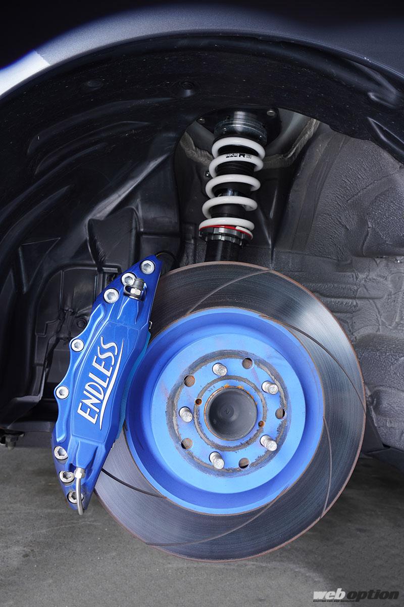 さらに、底上げされた動力面に負けないよう、サスペンションはHKSハイパーマックスR、ブレーキはエンドレスのキャリパーシステム、LSDはオリジナルの機械式1WAY…と、足回りから駆動系まで徹底的に強化。サーキットでも存分に楽しめるハイスペックへとブラッシュアップさせているのだ。