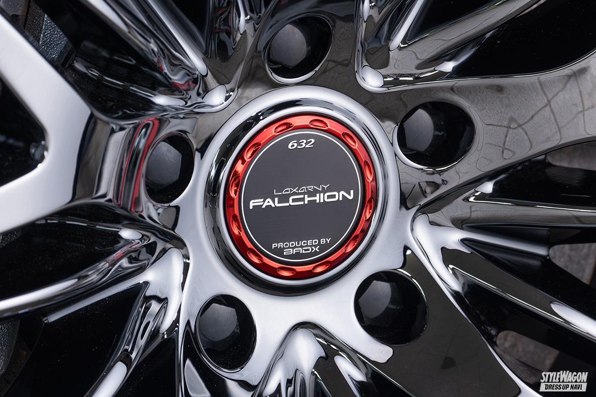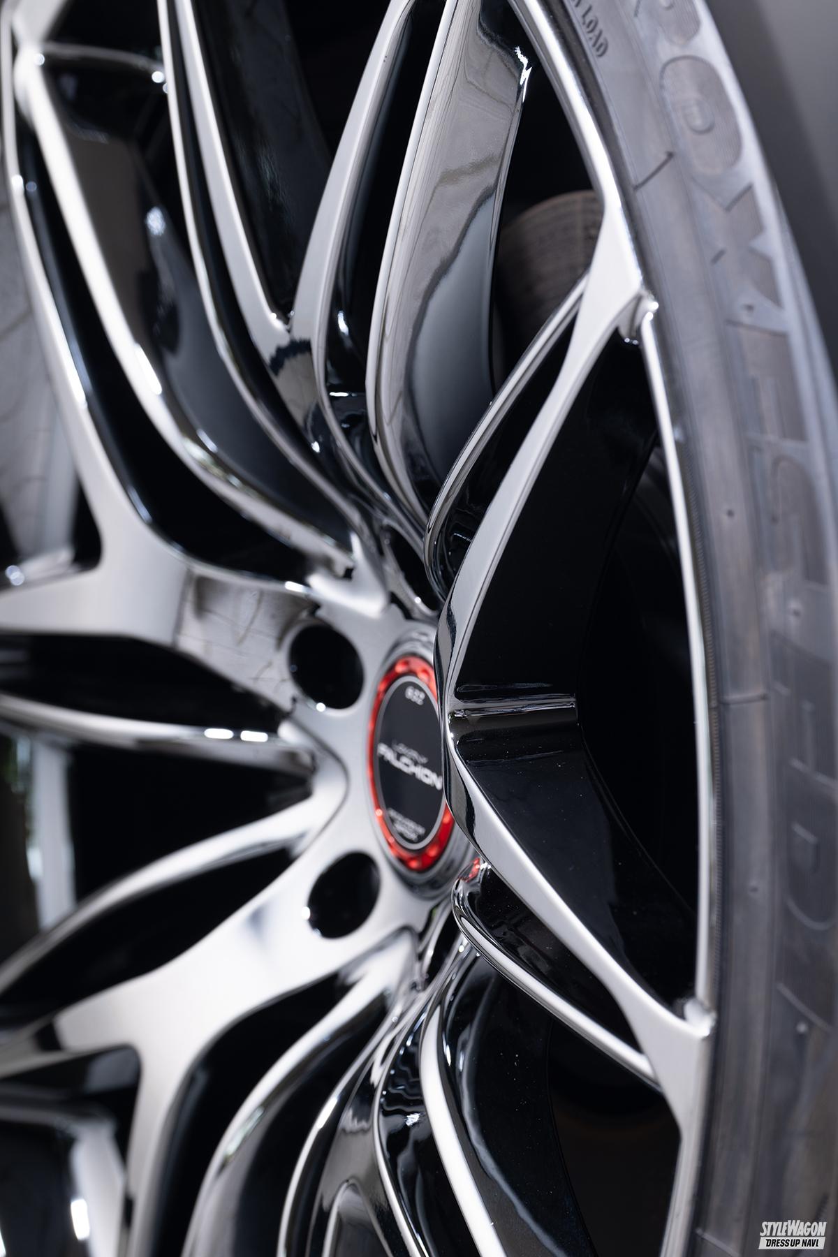 そんなファルシオンで特にチェックしておきたいのが、クラウンクロスオーバーなどにジャストな21インチサイズ。持ち味の大口径感と立体感、コンケイブの迫力を満喫できる21インチは、力強く伸びやかで風格あふれる足元の演出に最適。定番のブラックポリッシュでも十分に映えるが、大口径サイズ限定で設定されるSBCカラーを選択すれば、その存在感はさらに底上がる。デカくて独創的なそのフェイスデザインに、煌びやかなSBCの輝きを添えれば足元のプレミアム感は確実に急上昇。クラウンに相応しいオーラを求めるのなら、21インチのSBCだ。