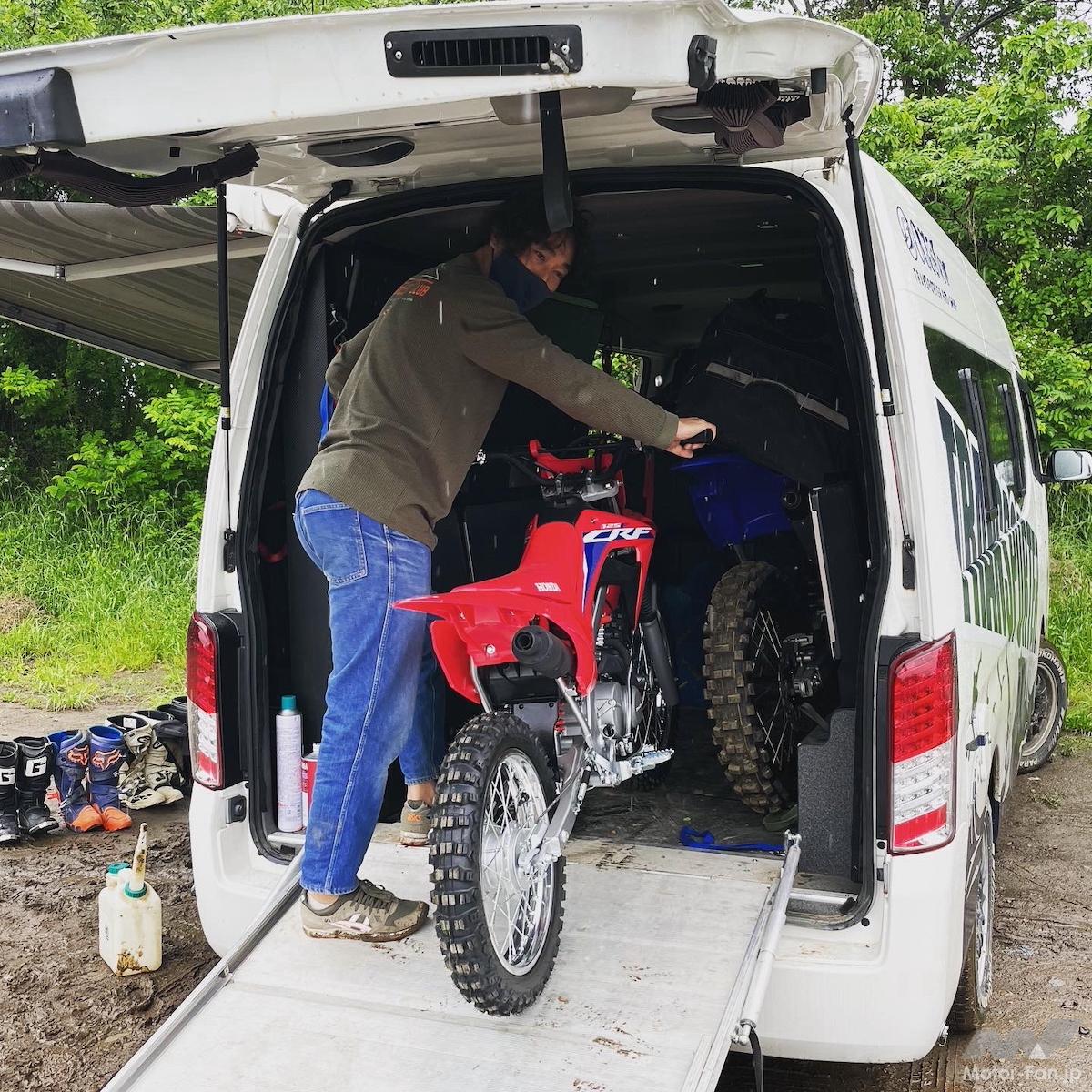 はじめはオフロード仲間が積んでくれるというので、トランポはいらないと思っていた。しかし、何度かコースに行くうちに、どうしても能動的に動けないもどかしに遭い、これじゃあダメだということで、トランポ購入を決意したのであった。