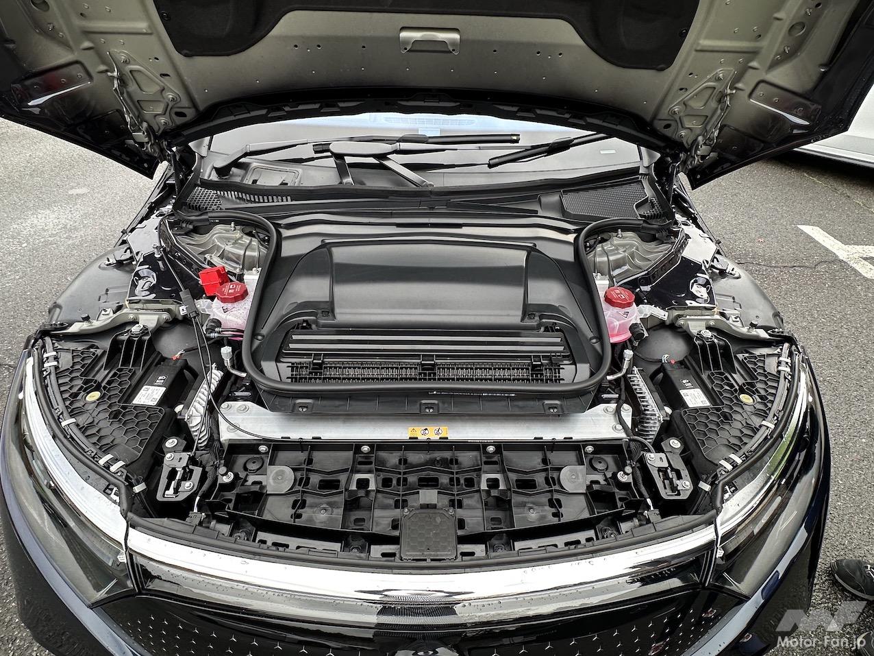 ボンネットフードは基本的にサービス工場でのみ開閉が可能だが、特別に開けて見せてもらうと、スペースのかなりの部分を、汚染物質を除去する大型のHEPA(High Efficiency Particulate Filter)フィルターが占めているのがわかる(その両サイドに、アルミダイキャスト製の、いかにも局所剛性が高そうなサスペンショントップが見える)。
