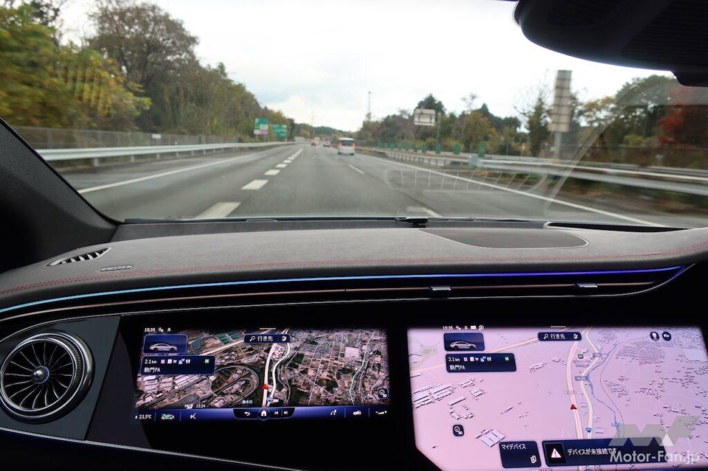 EクラスやSクラスなど、既存のエンジン車で既出の技術だが、最新技術を満載したEQSとの親和性はとくに高いと感じた。新鮮だし、実際、便利だ。ARヘッドアップディスプレイを標準装備するメルセデスAMG EQS 53 4MATIC+ではARナビゲーションの情報をフロントガラス上に表示できるため、センターディスプレイへの視線移動の必要がなく、より使い勝手がいい(メルセデス・ベンツEQS 450+にはオプション設定)。