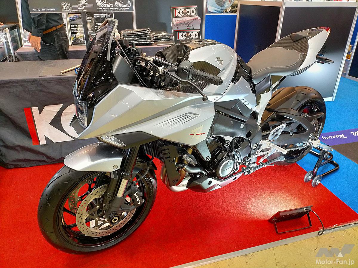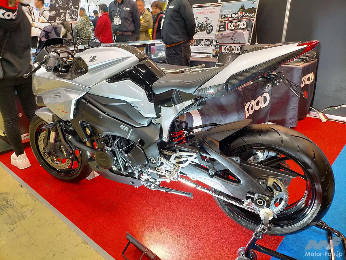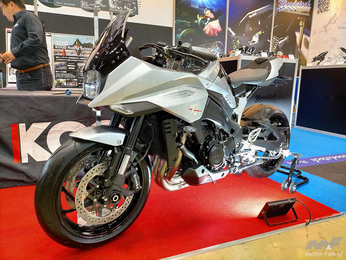 オリジナルのバイクパーツの製造・販売に加え、ロードレース活動も積極的に行うカスタムショップ「ウッドストック」と、レースでも強みを発揮する高性能なクロモリアクスルシャフトの製造販売でも有名な「KOOD」のコラボレーションによるスズキ・カタナ改。
