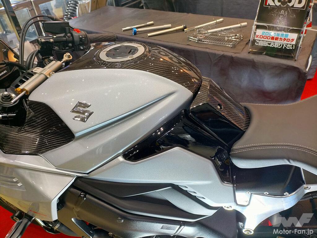 カーボンカウルで武装した旧型カタナ改vs2019年に復活したNEWカタナ【東京オートサロン2020】|Motor-Fan Bikes[モータファンバイクス]1983年式のスズキGSX1100Sカタナの外装を、レーシーなルックスのドライカーボン製に変更してカスタム度を大幅アップ。ノーマルのシルバーカラーや、ブラック仕様とは一味も二味も違う、“ちょっぴり悪そうな”存在感に注目。NEWカタナとのフォルムやイメージの違いもチェック!PHOTO/REPORT:北 秀昭(KITA Hideaki)