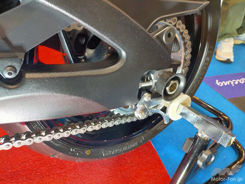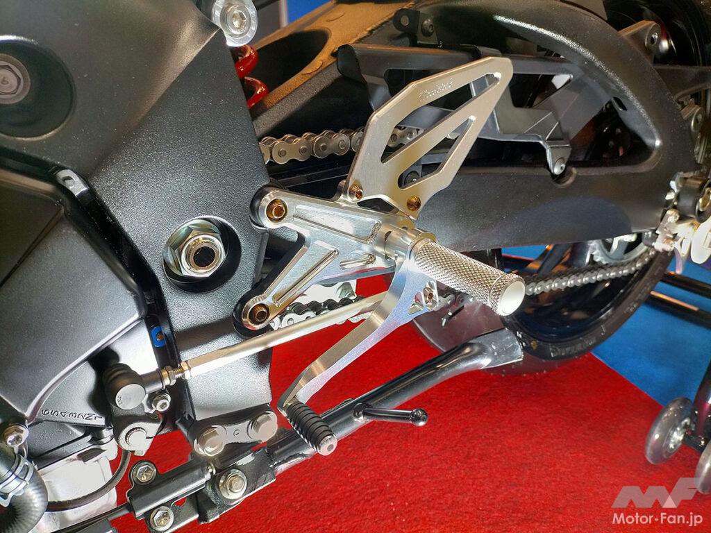 マフラーはサイレンサー部に滑らかなアールを設けたヨシムラジャパン製の「チタン Slip-On B-77 サイクロン(政府認証)」を選択。シングルシートと一体型のテールカウルは、ノーマルのショートタイプからシャープなイメージのロングタイプ(ワンオフ)にカスタマイズ。