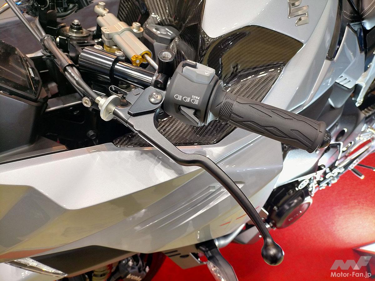 電子制御システムも充実。出力特性を3モードに変更できるS-DMS(スズキドライブモードセレクター)、トラクションコントロールを従来の3段階+OFFから5段階+OFFへと細分化、シフトアップ&シフトダウンの双方向で作動するクイックシフター、クラッチミート時に自動でエンジン回転を高めてエンストを防ぐローRPMアシストも導入済み。