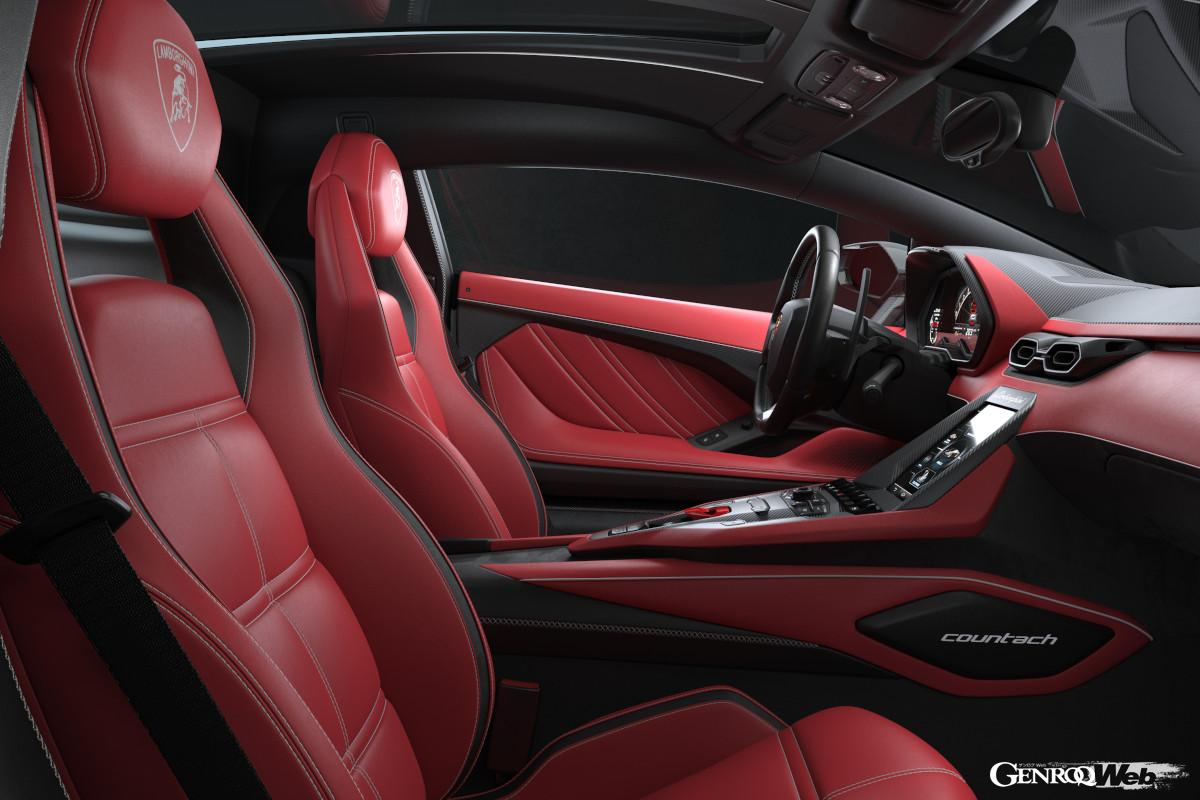 LPI800-4のモノコックやボディは、もちろんアヴェンタドールと同様にカーボンファイバー製。車重は乾燥重量で1595kgと軽量で、ボディーデザインは斬新でありながら、そのディテールには初代カウンタックにモチーフを得た特徴的なデザインが採用されている。0-100km/h加速を2.8秒で、そして最高速では355km/hに達することが可能とされる。