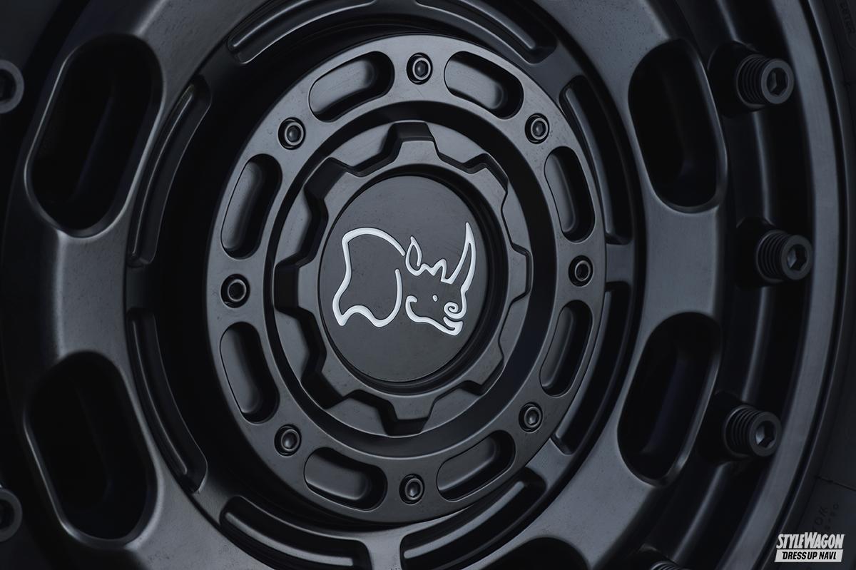 ディバイドUP210によるリフトアップに、ネクサスジャパンのバンパーガードなどで旬のオフタイルを構築したBRAT郡山。同店で今人気を集めているのが、US生まれの本格オフホイールブランドであるブラックライノだ。