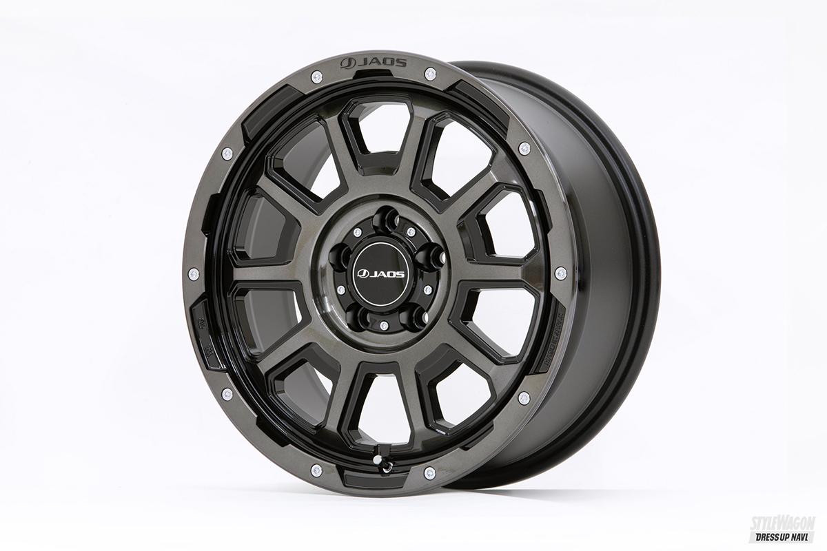 4×4カスタムの第一人者であるジャオスが仕立てた1本。このアダマスBL5は、屈強な5スプリットディッシュスポークと、変化のある凹凸とピアスボルトで魅せるビードロック風リムを搭載した存在感高まるモノブロックホイールだ。一段低い位置のリブで囲われたスポークが生み出す、大小のホールが独特の存在感を発揮。パワフルなビードロックスタイルのリムには、JAOSの刻印入りでヘキサゴン仕様のダミーピアスボルトがキラリ輝き高級感と、実寸以上のサイズ感を演出する。フィニッシュは現在2色をラインアップ。助手席側のスモークポリッシュブラックならスタイリッシュ、運転席側のマットブラックならタフな雰囲気が楽しめる。
