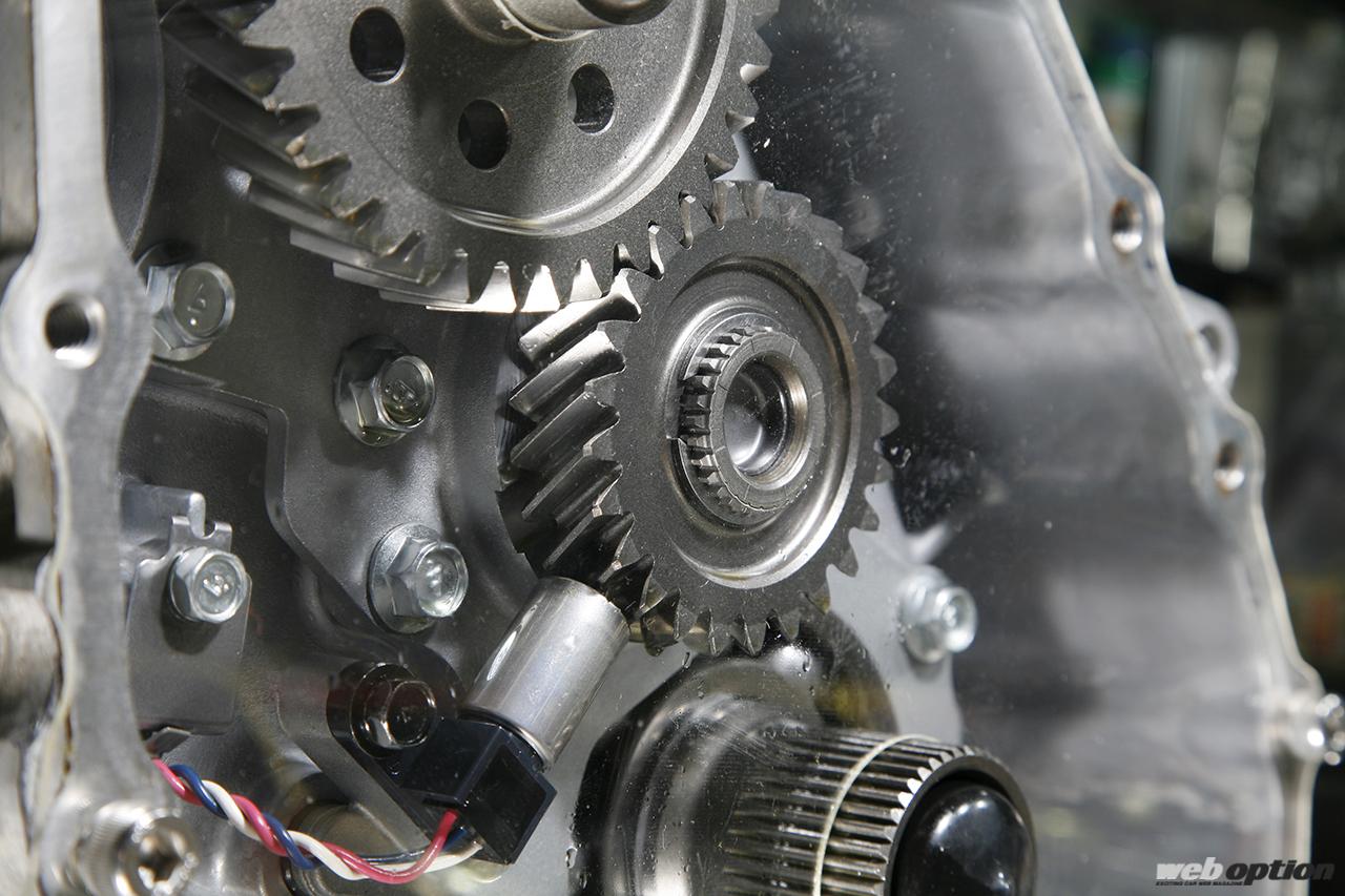 また、パワーがそこまで高まると大きなネックになるのは駆動系だが、対策済みなのは言うまでもない。クラッチディスクの枚数アップや強化1速ギヤの導入、オイル流路拡大による油圧アップなどによって、GR6型ミッションが抱える問題を解消している。