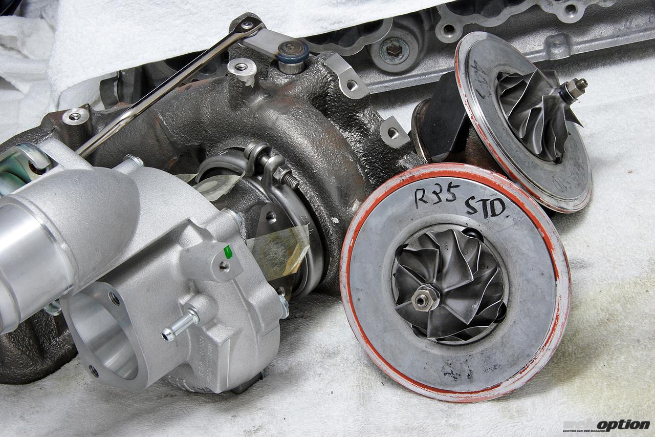 そこにセットされるタービンは、トップシークレットオリジナルのBB900。純正タービンをベースとしてコンプレッサー側にHKS GT3037、エキゾースト側にGT2835のホイールを組み込むと同時に、軸受けのボールベアリング化も図られる。タービン名から想像が付くように、想定馬力は2基で900psだ。