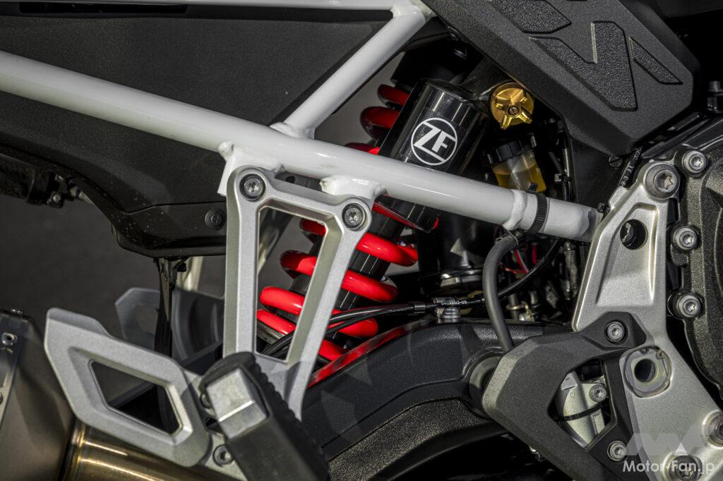 サスペンション(前/後):テレスコピックφ45mm倒立式フォーク/アルミキャストダブルスイングアーム式