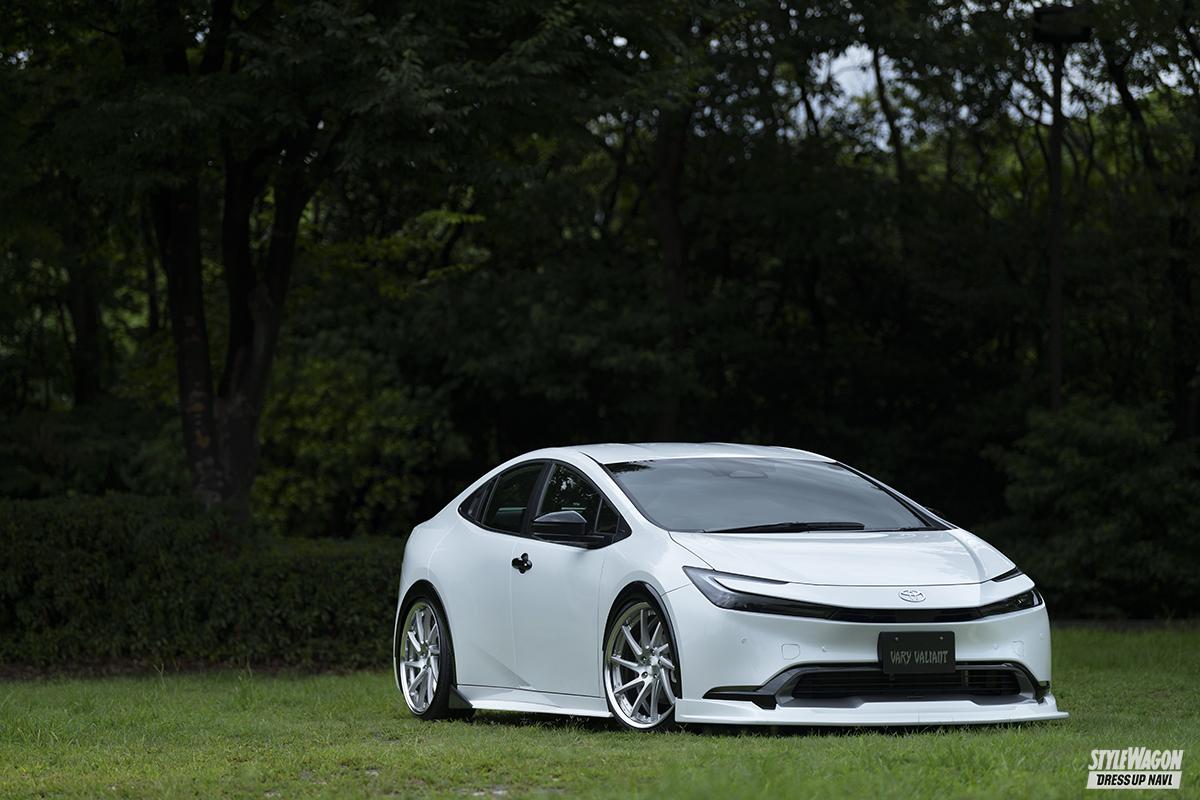 パーツは、フロント、サイド、フェンダー、トランク&ルーフスポイラーの6点で構成され、各部において、ガレージベリーらしいスポーティさが強調されたデザインで仕上げられている。さらに、サイドステップと別体式の後方ディフューザーを用意したほか、素材にFRPと平織りカーボンを選択できるなど、自分好みのスタイルにアレンジできるのも特筆点。先代プリウスでも人気のあるトランク&ルーフスポイラーは、サイズ感を抑えつつも十分に主張できる絶妙さが美点で、トランクスポイラーは大きめサイズのタイプ2も開発予定とのことだ。