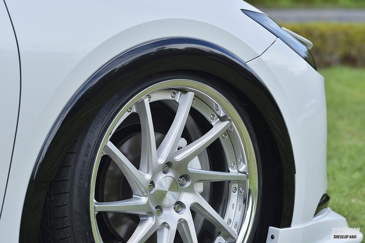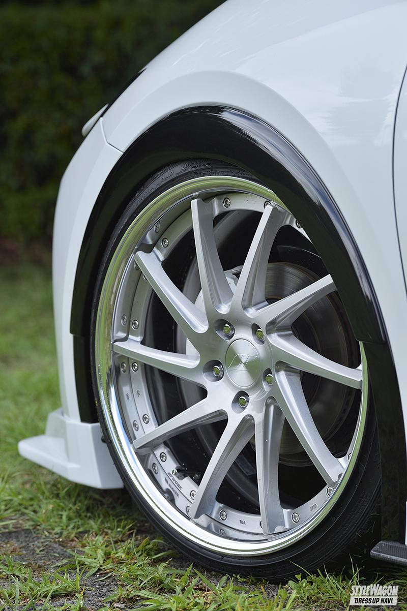 また、車高を下げずにフェンダー間のクリアランスを縮めて、さりげなく低さをアピールできるローフォルムフェンダーも必見。リア用エアロの開発も検討しているなど、今後のパーツラインアップに期待が高まる。
