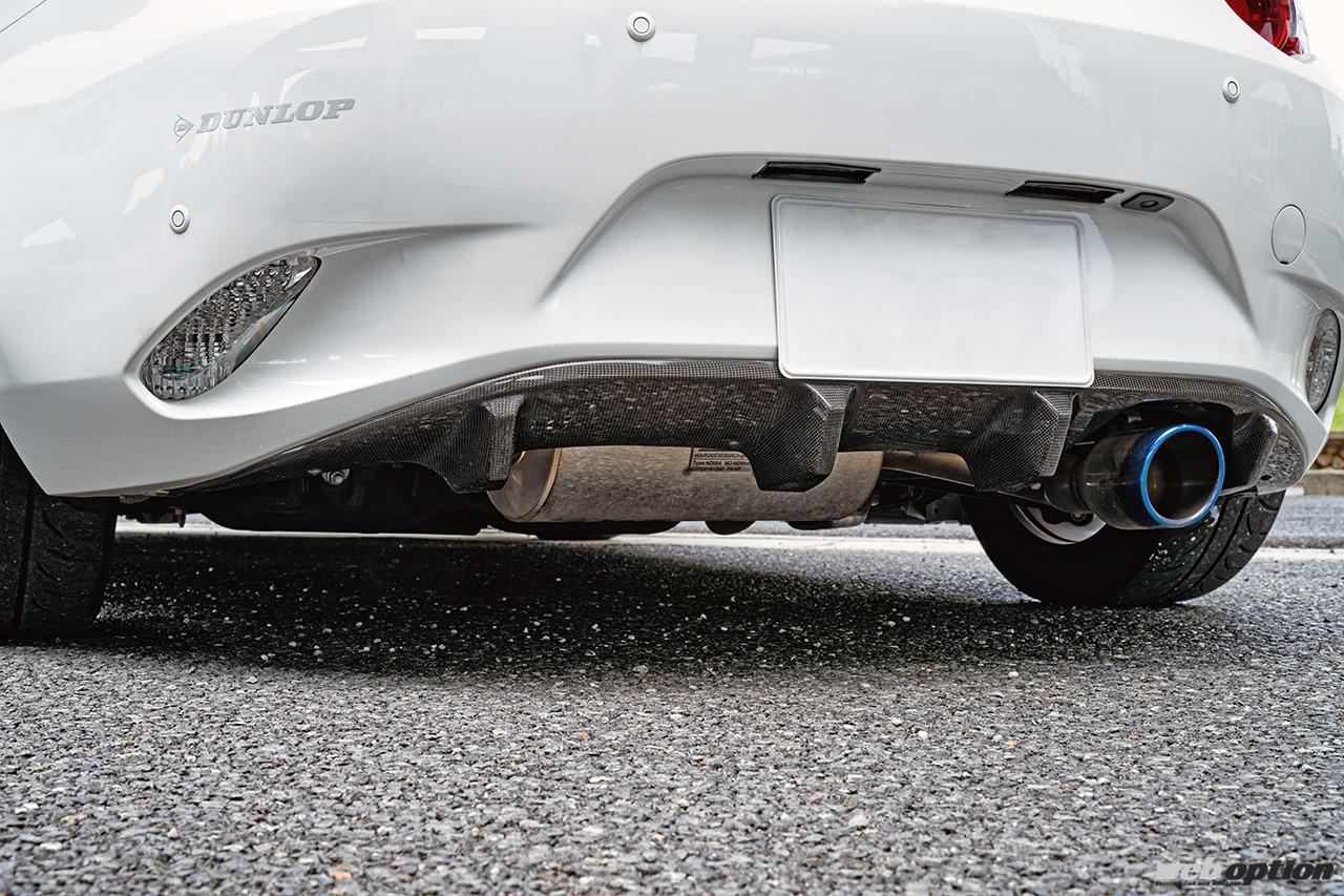 リヤビューを引き締めつつボトムの空気を効率的に排出するディフューザーも、見た目だけではない機能パーツのひとつ。素材はFRPとカーボンの2種類をラインナップしている。