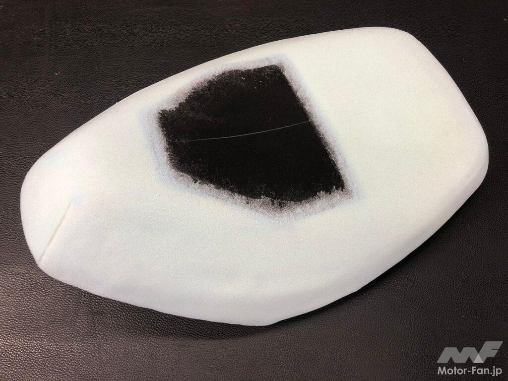 ずいぶん前置きが長くなりましたが、こういった理由から今回は、シートを張り替えとともに、ゲルシートの導入を決断しました。ただ、シートの上に座布団のように乗せるタイプは数あれど、見栄えがどうしても苦手で……。バイクシート張り替えの老舗、丸直さんに、純正のあんこ(スポンジ)にゲル(ゲルザブ)を埋め込んでもらう加工をお願いしました!