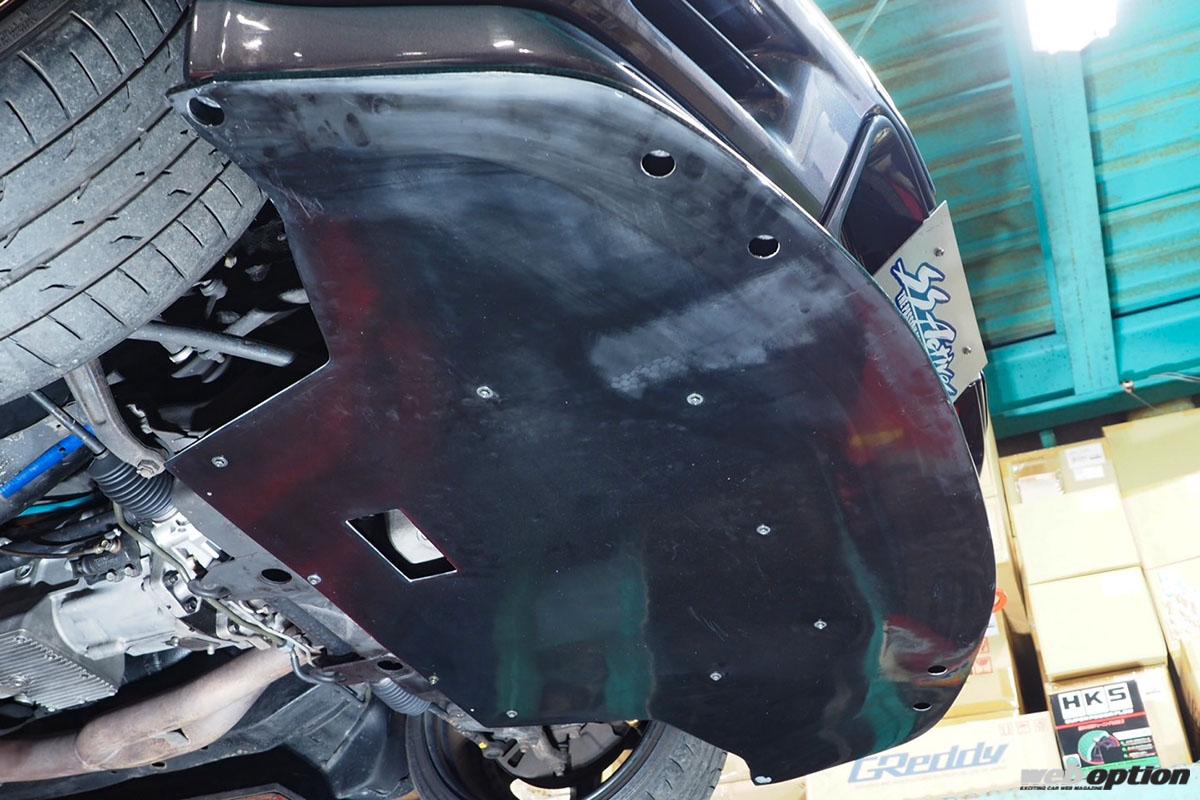 また、取り付けは純正サスメンバーを利用した15点留めという頑強な仕様で、強大なダウンフォースにも完全対応。オイルドレンの位置にはサービスホールが空けられているため、オイル交換時にディフューザーを脱着する必要がないのもポイントだ。