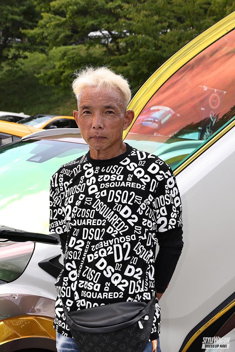 元々ロェンでコンプリートカーとして購入したそうだが、個性的なカラーを筆頭に大胆に進化! 最初ゴールドのホイールを履いたことでゴールドのパーツが増えていき、その後フロントガラスのフィルムに合わせ、アボカド仕様のラッピングを施工した。さらにフェンダー追加の際、コチラはペイントにて色を合わせたという。角度によりガラリと色味を変えるだけにインパクトは絶大。ビヨンド製フェンダーは当時後期用がなく、イロイロ大変だったそうです。