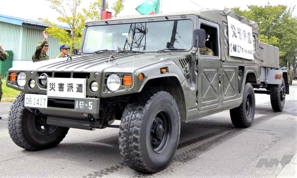 さて、自衛隊は年々とその救援活動などの内容や規模が拡大して行きましたが、発足してから40年以上、不整地でも難なく使用できる運搬・輸送車両は依然としてジープ型の比較的小型の車両がほとんどでした。そこで自然と、4WDで不整地では高い走破性を備えつつ、道路でも普通乗用車なみに小回りが効き、大容量の物資や今まで以上の人員が運べ、あらゆる場面で機動力に優れた運搬車両が欲しいという声が大きくなってきました。こうして主に陸上自衛隊の要求をくみながらトヨタが開発にあたって作られたのが高機動車です。なお、製造はトヨタグループの日野自動車が担当しています。高機動車は1993年から陸上自衛隊に実験配備が始まり、以後、年々と配備台数が増加して行きました。