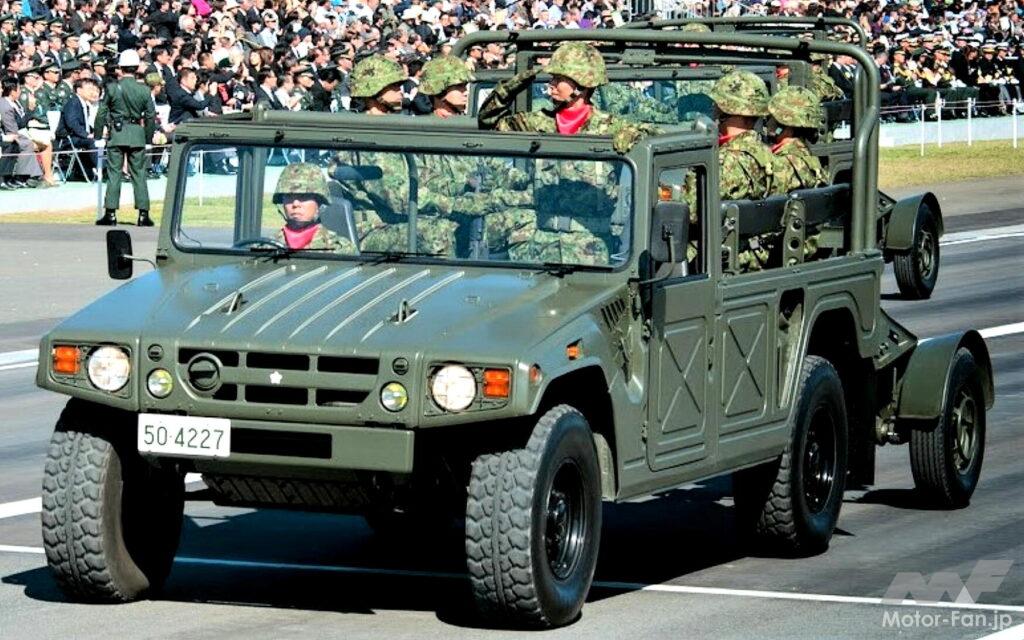 高機動車は人の輸送にも物資の輸送にも便利に使える、マイクロバスとトラックの両方の性格をあわせ持った車両です。車体はプレスフレームで、エンジンを中央寄りの前方に配置したフロントミッドシップ・レイアウトを採り、前後のサスペンションはダブルウィッシュボーン式です。駆動機構はセンターデフロック付きのフルタイム4WDで、前後ともに電動デフロックとトルセン式LSD(リミテッド・スリップ・デフ)を採用しています。