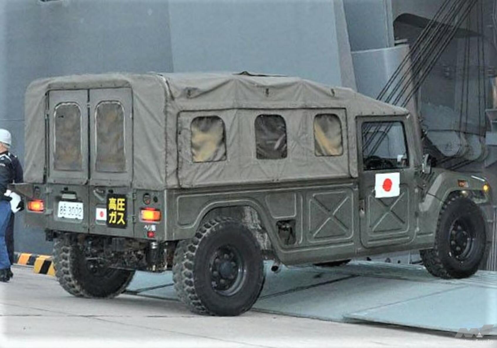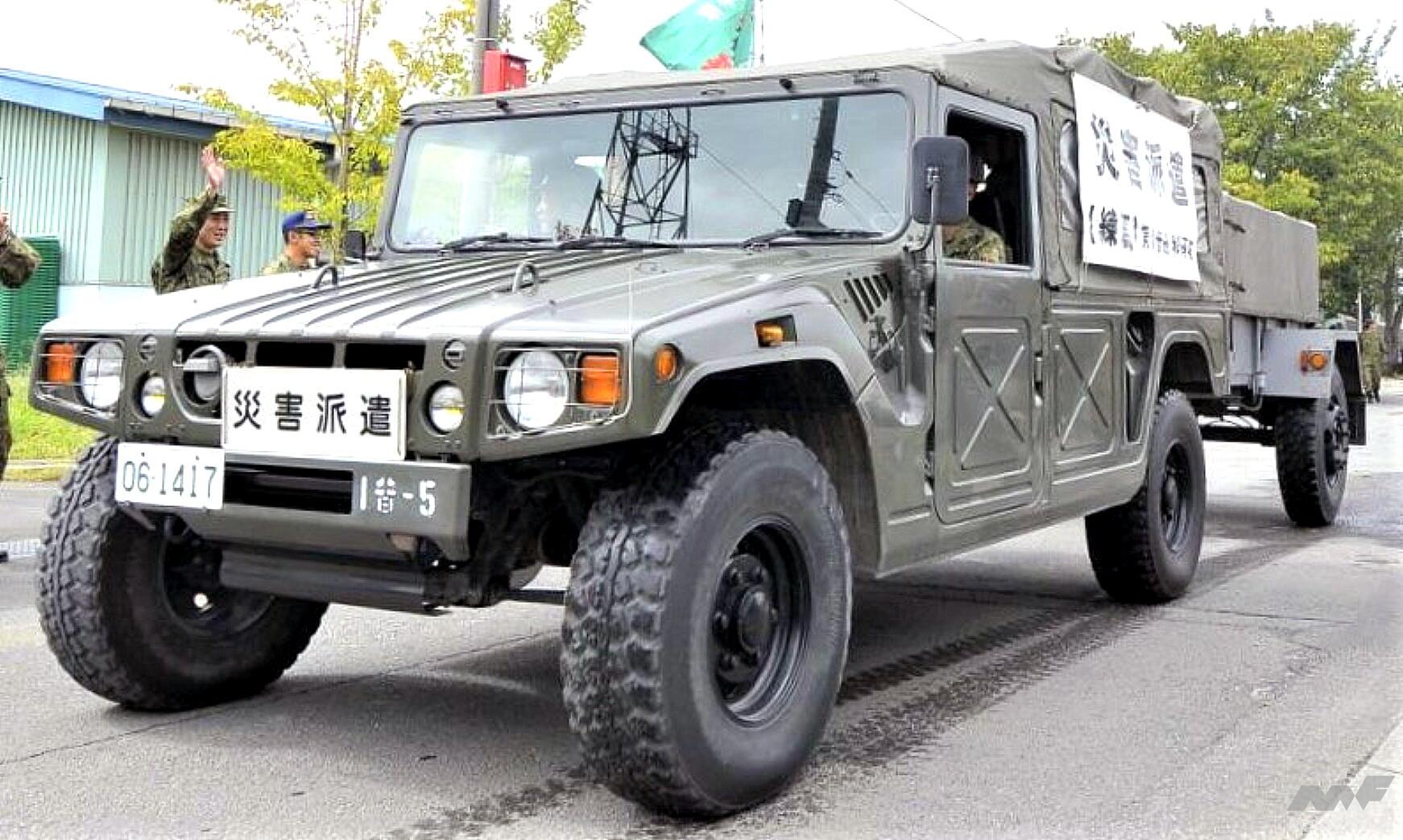 最大積載時の総重量は約4トンで、航空自衛隊のCH-130Hなどの輸送機や陸上自衛隊のCH-47J大型輸送ヘリによる航空輸送や、輸送ヘリの機外に吊り下げての空輸も可能になっています。装備されている大きなタイヤは、タイヤが傷ついて空気圧が低下しても一定距離を走行できるランフラットタイヤで、空気圧調整装置も搭載されています。