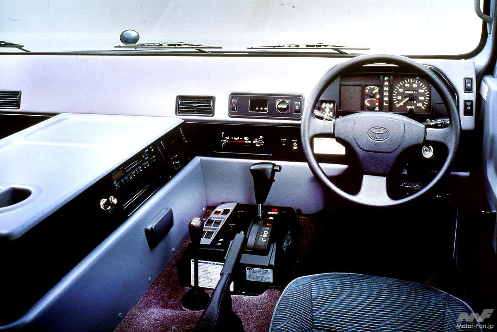 また、車輪のハブに減速ギヤを組み込んだハブリダクションが採用されているのも特徴の一つ。ハブリダクションはギヤ中心間の距離だけ車軸の位置が高くできるので、デフまわりの最低地上高を大きくできるため、大型のタイヤと相まって大きな地上高を確保、悪路の走行性能を向上させています、さらに、リヤには逆位相の四輪操舵(以下、4WS)システムが組み込まれており、大柄な車体のわりに最小回転半径5.6mという驚異的な小回り性を実現しています。ちなみに、この旋回半径は3代目ヴィッツの“RS”グレードと同じです。この小回り性の高さは狭い路地や入り組んだ道の多い日本の道路事情にはピッタリで、市街地や都市部での災害派遣などに対応できる能力と言えます。