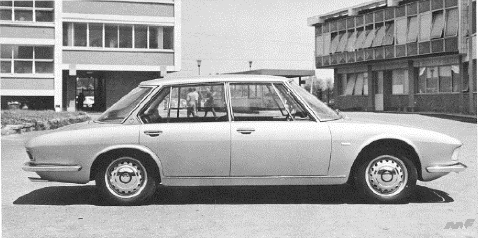 続いてマツダはひとまわり大きなセダンのデザインをベルトーネに依頼。寸法要件が緩和され、ジウジアーロは美しいセダンのプロトタイプを作り上げた。