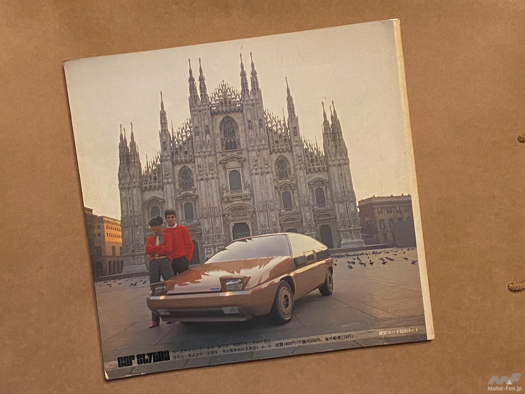 (株)三栄がかつて発行していた『カースタイリング』というデザイン専門誌の第37号。1981年末に発売されたその裏表紙には、ミラノの大聖堂をバックに1台のコンセプトカーの写真が掲載されていた。それから39年の歳月を経て、マツダイタリアは同じ場所で同じクルマを撮影した。
