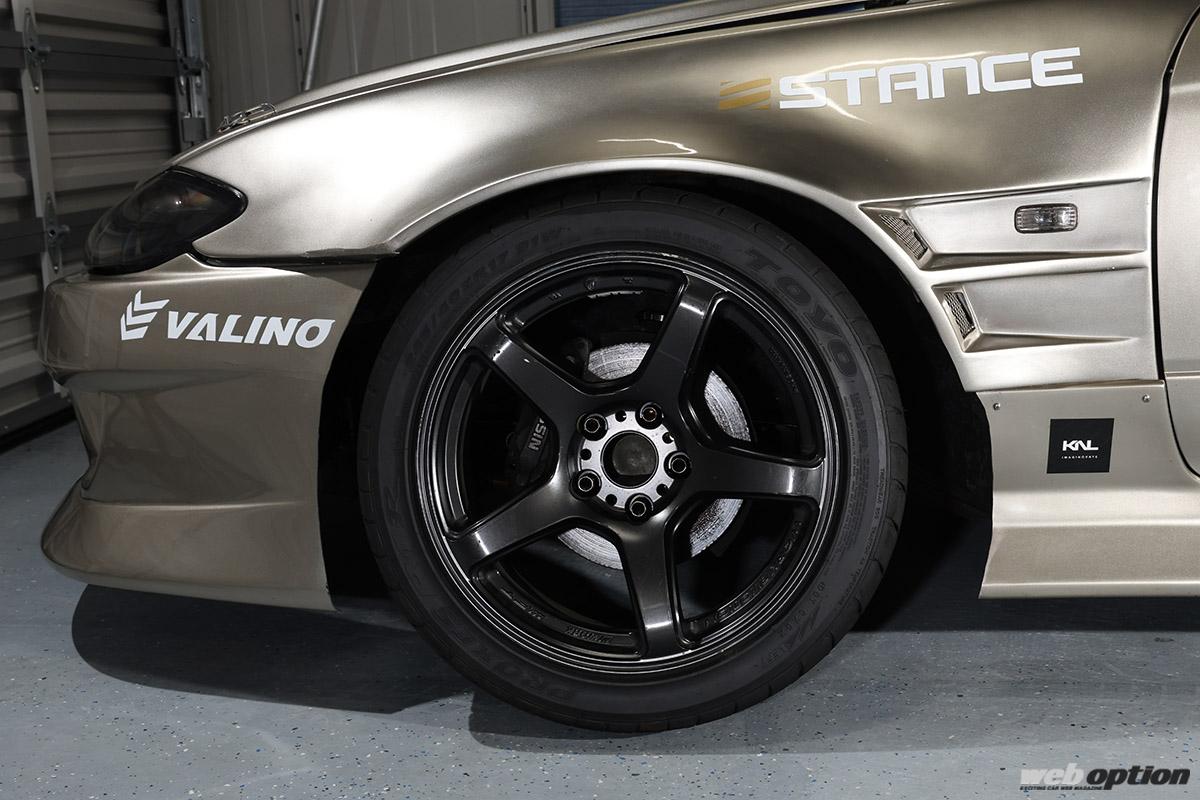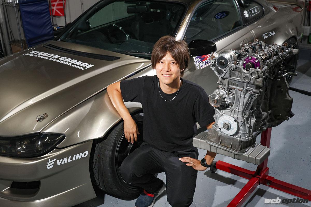 この美しいS15シルビアは、オーナーである川又さんが手塩に掛けて育て上げたドリフトスペック。名門“ステルスガレージ”に通いながらチューニングのノウハウを吸収していき、気がつけば機械加工からセッティングまで自らこなす生粋のプライベーターへと進化していたそうだ。