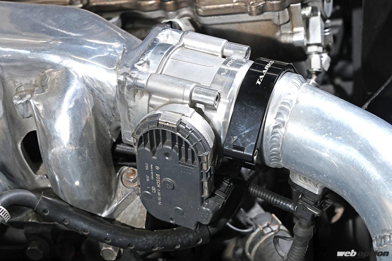 スロットルはLINKジャパンが扱うKTD(ボッシュ製)の68φ電子制御式を投入。シルビアの場合、ペダル(&ワイヤレススイッチ)にはZ33/34用などを使うのが定番だが、川又さんはストローク感が絶妙でセンサーの世代も新しい某車種用を使っている。