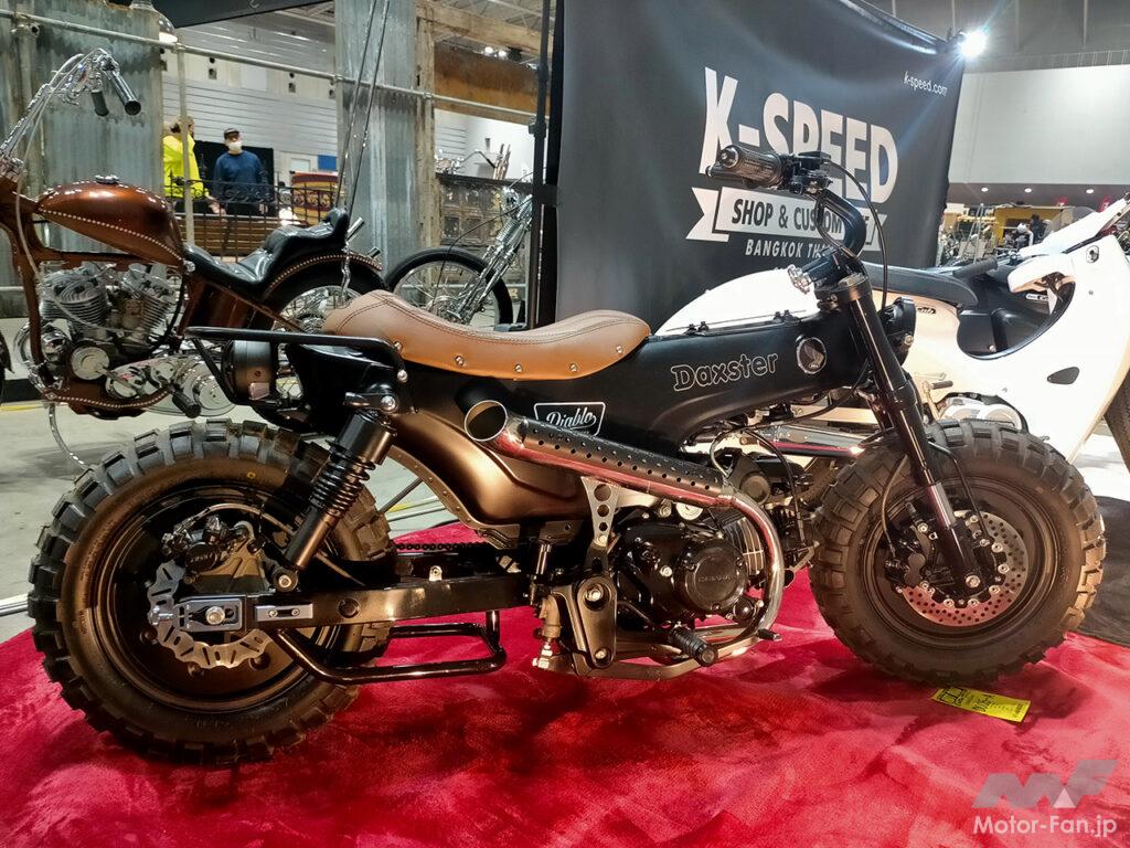 バイク王国・タイのバンコクで毎年開催される、タイ最大の国際モーターショー「バンコク インターナショナルモーターショー」。写真は44回の2023年大会に出品された、国内の人気模型メーカー「タミヤ」と、タイの「Cub HOUSE(カブハウス)」のコラボによるホンダ・ダックス125のカスタム。タイ国内でCub HOUSE(カブハウス)より受注限定発売された。
