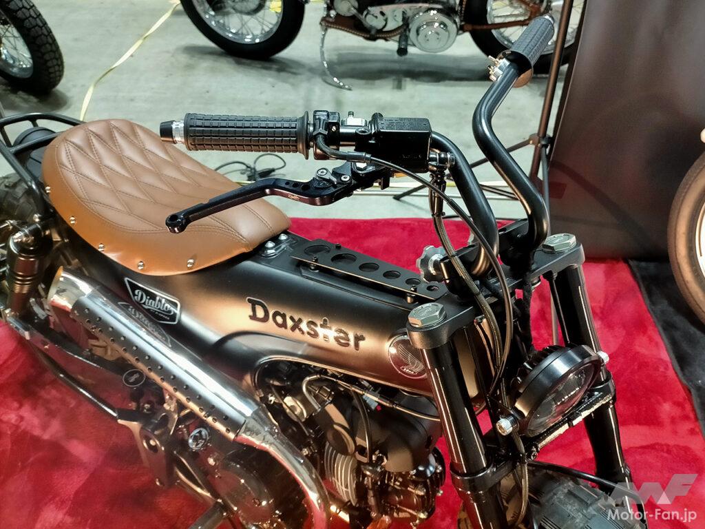 ホンダ・ダックス125を折りたたみ式ハンドルに! 太足ゴツ系タイヤのコンプリート仕様車【K-SPEED】2022年12月4日(日)にパシフィコ横浜(神奈川県横浜市)で開催された日本最大級のカスタムカー&カスタムバイクイベント「ヨコハマ・ホットロッド・カスタムショー(HCS)」。第30回を迎える今年のイベントにも、ビルダーたちが手掛けたハイレベルの作品が集結。ここではタイのパーツメーカー「K-SPEED」が製作したダックス125カスタムをご紹介しよう。 REPORT●北 秀昭(KITA Hideaki) K-SPEED JAPAN https://k-speed.com/ イベント主催:ムーンアイズ https://www.mooneyes.co.jp/