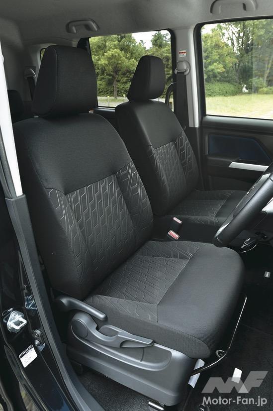 後席は床と座面の間隔が乏しく、足を前側へ投げ出す座り方だが、格納するとボックス状の広い荷室になる。荷室の床を反転させると汚れを落としやすい素材が貼られ、自転車を積んだ後の清掃もしやすい。収納設備も充実しており、発売された2016年の時点で、500mlの紙パックが収まる収納設備を備えていた。
