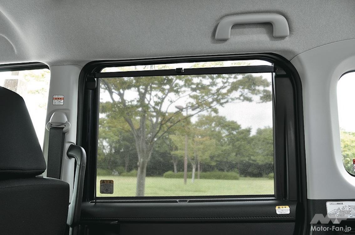 後席は床と座面の間隔が乏しく、足を前側へ投げ出す座り方だが、格納するとボックス状の広い荷室になる。荷室の床を反転させると汚れを落としやすい素材が貼られ、自転車を積んだ後の清掃もしやすい。収納設備も充実しており、発売された2016年の時点で、500mlの紙パックが収まる収納設備を備えていた。