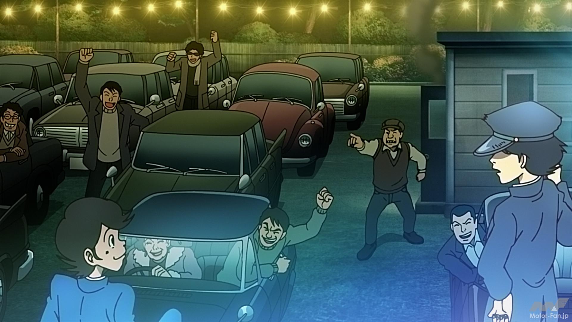 ほかにも劇中の背景車両としてダットサン210、日産セドリック(初代・前期)、ダットサン・ブルーバード(310)、いすゞ・ベレルと思しきクルマを確認できた(背景としての登場なので確証に至らないクルマもあるが)。リアルに描かれた昭和30年代の街並みにこれらの旧車が映え、本編とは関係ないところでクルマ好きを楽しませるエピソードになっている。