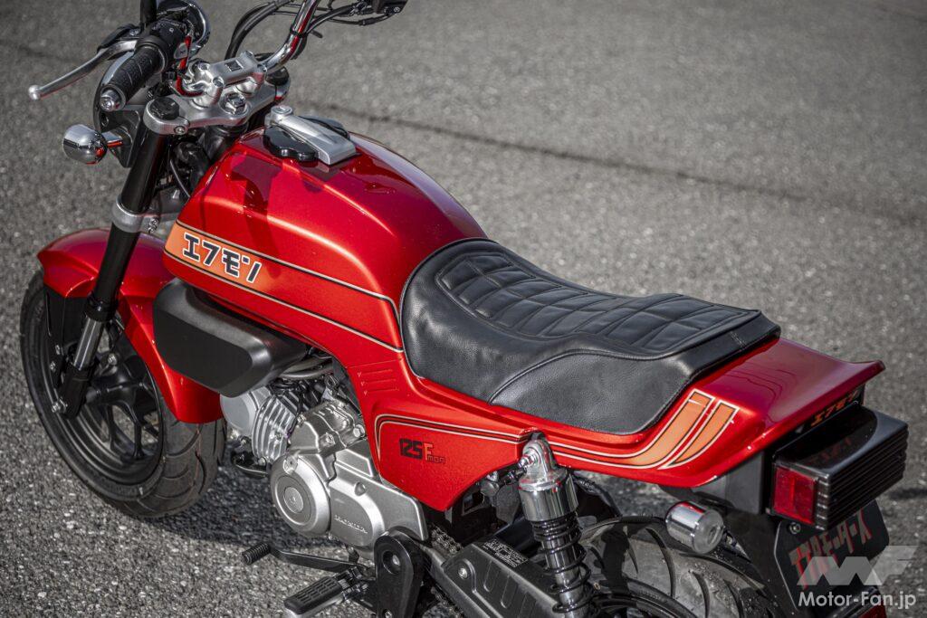 しかも「エフモン」はモンキー125にかぶせるだけという手間要らず。モンキー125の純正タンクはそのまま使い、わずかにサイドカバーとリヤフェンダーを外すだけ。リヤフェンダーは純正を外して「エフモン」に付属する専用カウルに付け替える必要があるが、後は「エフモン」を被せてボルトで固定するだけだ。