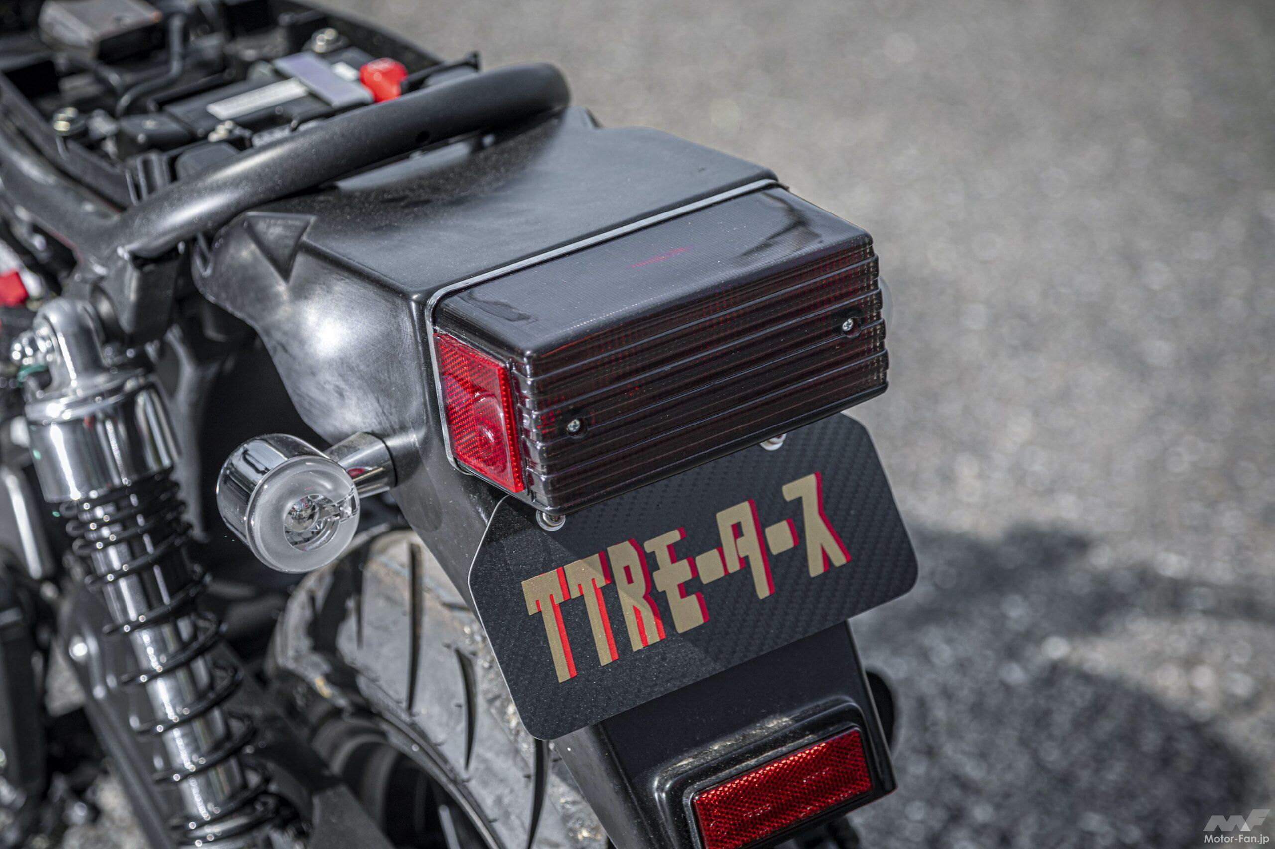 リヤフェンダーを専用に開発したのはCB-F風テールランプを外装キットと組み合わせるためだ。テールカウルから絶妙な具合ではみ出すテールランプはスタイルの要でもある。またランプ形状も専用に開発しているため、全く違和感のないスタイルを生み出している。気になる「エフモン」の価格は18万7000円(税込)。キットは未塗装でタンクシートカウル、テールカウル、テールレンズ、タンクキャップカバー、固定金具で構成される。もちろん塗装もT.T.R モータースで請け負ってくれる。塗装プランは4色から構成され価格は11万円(税込)。つまりこのスタイルを30万円前後で実現できるのだ。