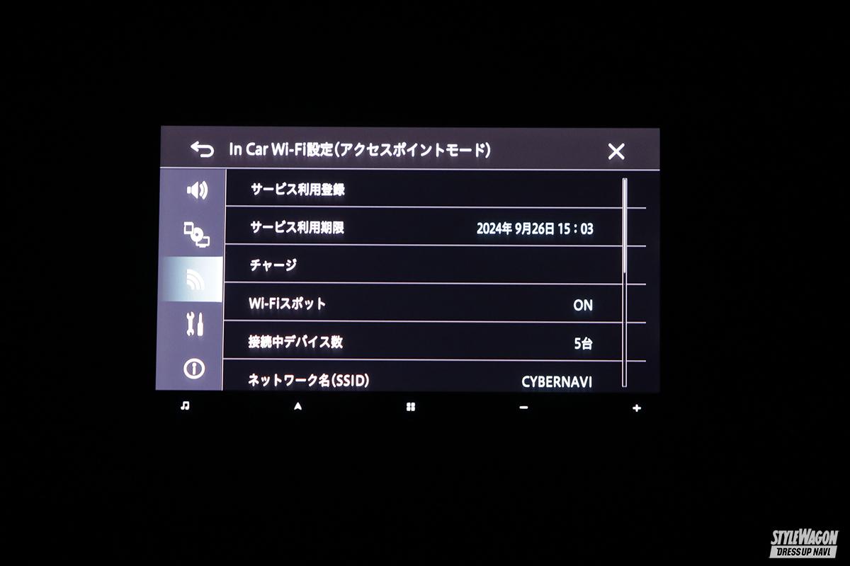 製品末尾に「-DC」のあるモデルは「ネットワークスティック」が同梱され、サイバーナビをWi-Fiルーターにすることでスマホやタブレットなど5台の機器の接続が可能だ。1年間の無償使用権が付くほか、追加費用なしで最大3年分(最大年6回分)の地図データのバージョンアップが行える。