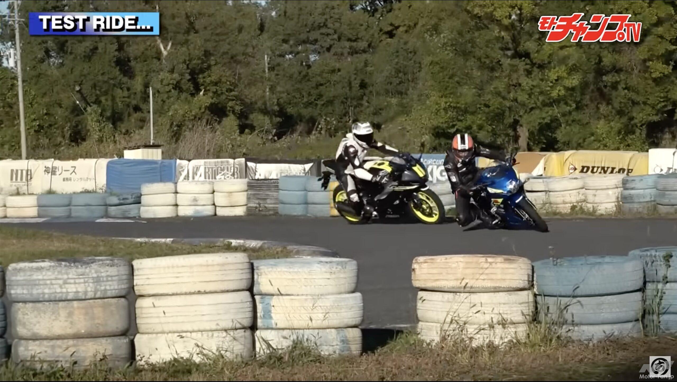 ミニサーキットでの比較試乗はケニー佐川と中村友彦が2台を乗り換えて交互に走らせている。2人とも2台を直接乗り比べることで、どう違うのかを探ったのだ。事前にGSX-R125はレーサーレプリカのように尖った存在であり、軽量コンパクトなこともあってサーキットでは有利と思われた。ところが比較しながら試乗してみると、意外にもYZF-R125が圧倒的に有利ということが判明した。