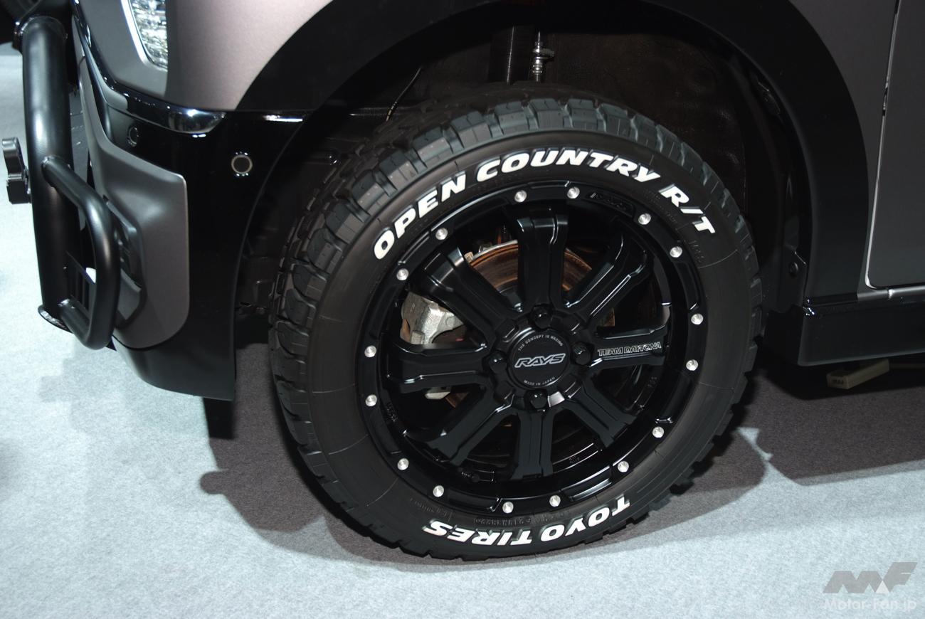 TOYO OPEN COUNTRY R/Tはデリカミニ「デリカミニ×Coleman」「SNOW SURVIVOR」にも装着されているタイヤで、サイズもデリカミニと同じ165/60R15になっている。